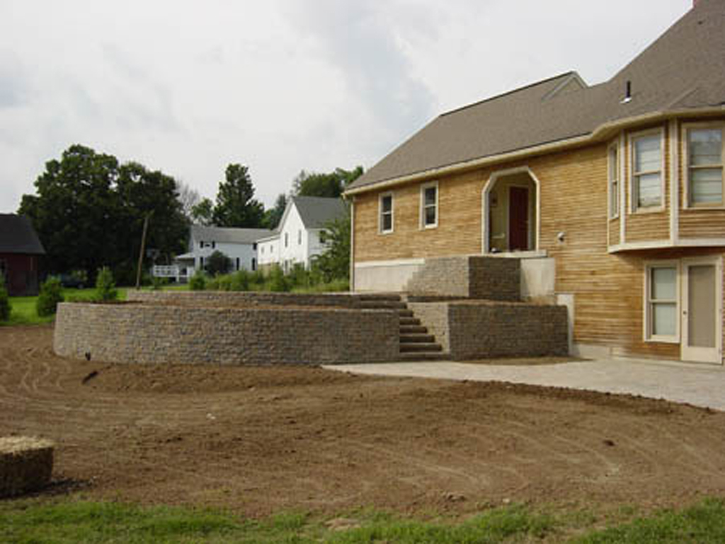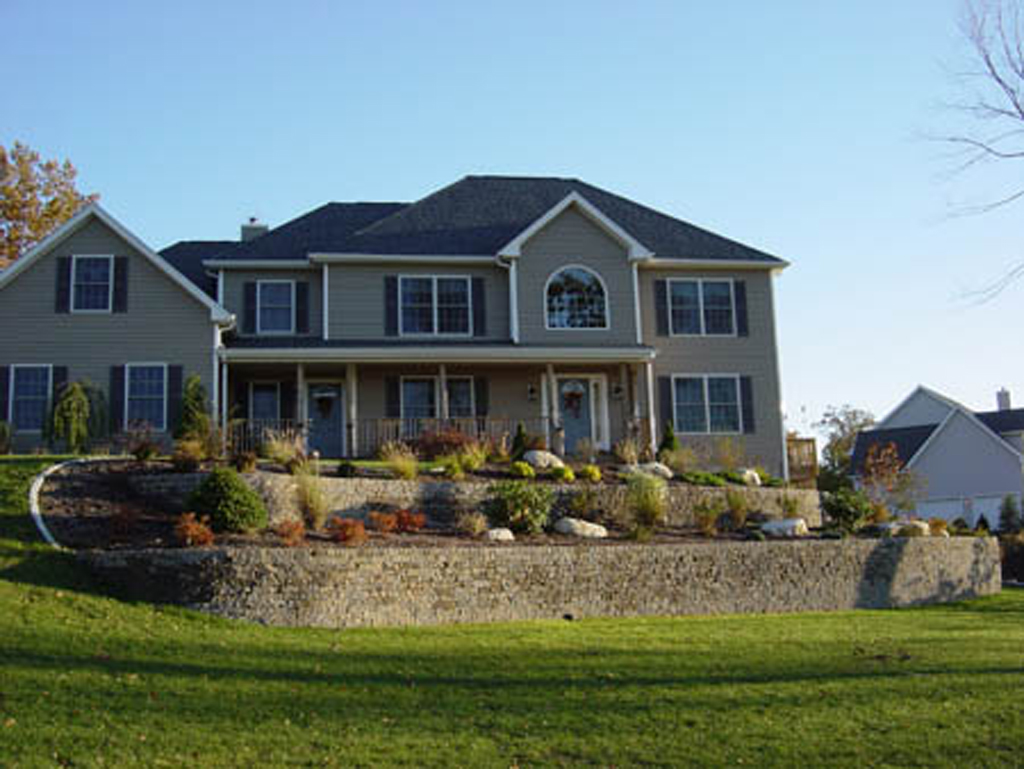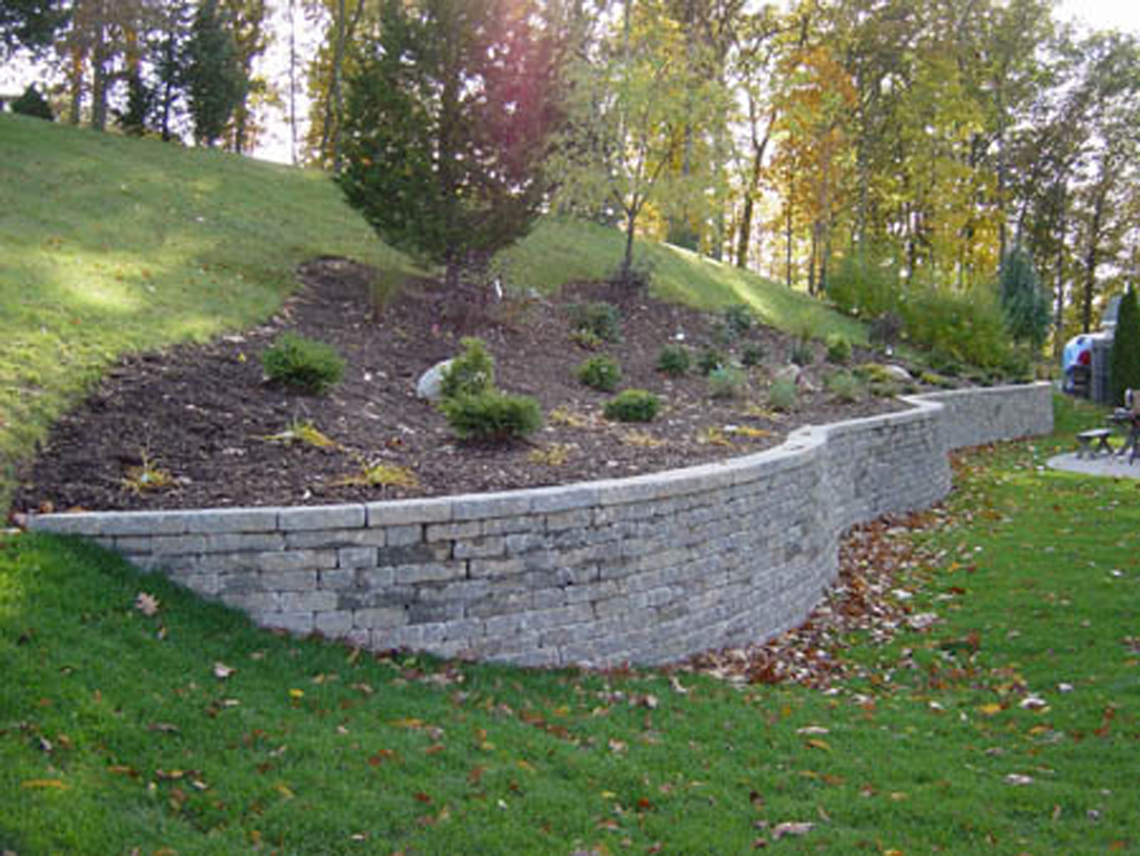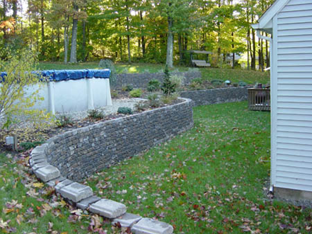 One of the most common walls constructed are the interlocking concrete retaining wall systems. These walls are engineered to work well to take up differences in elevation change within your landscape.