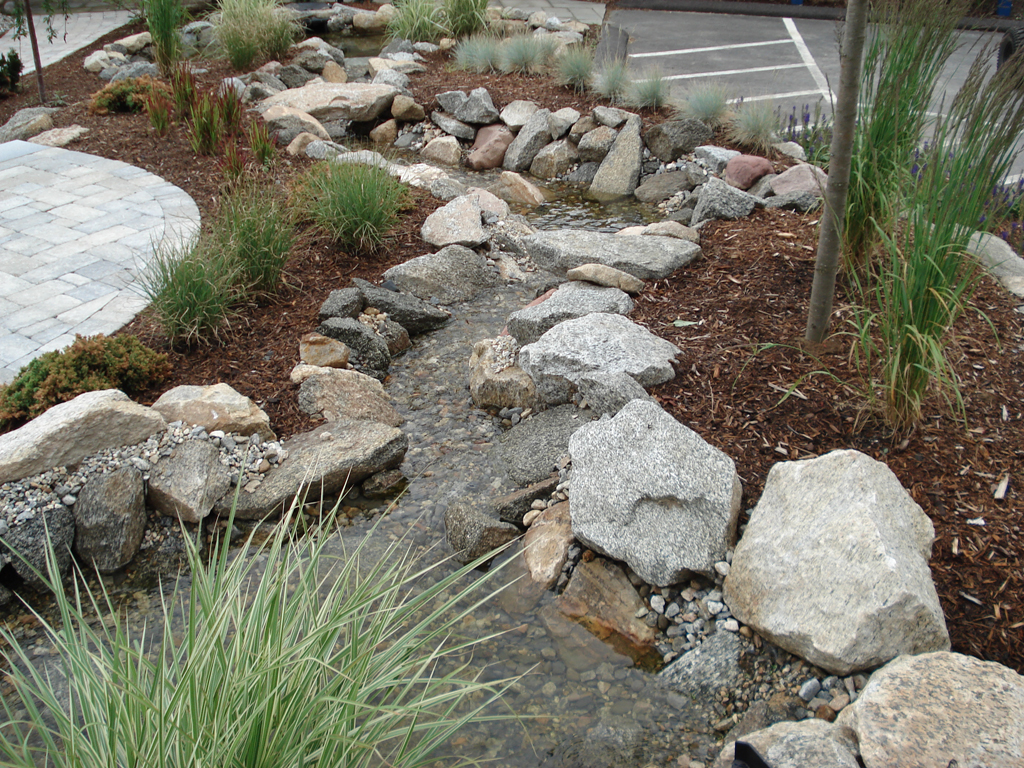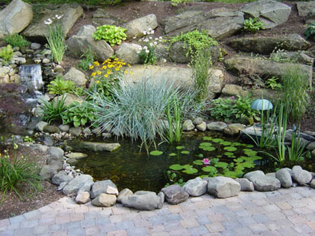 In addition to a professionally installed hardscape, the landscape of the yard including plantings, trees, perennials, good quality topsoil and mulch and sod for the lawn bring the project together.